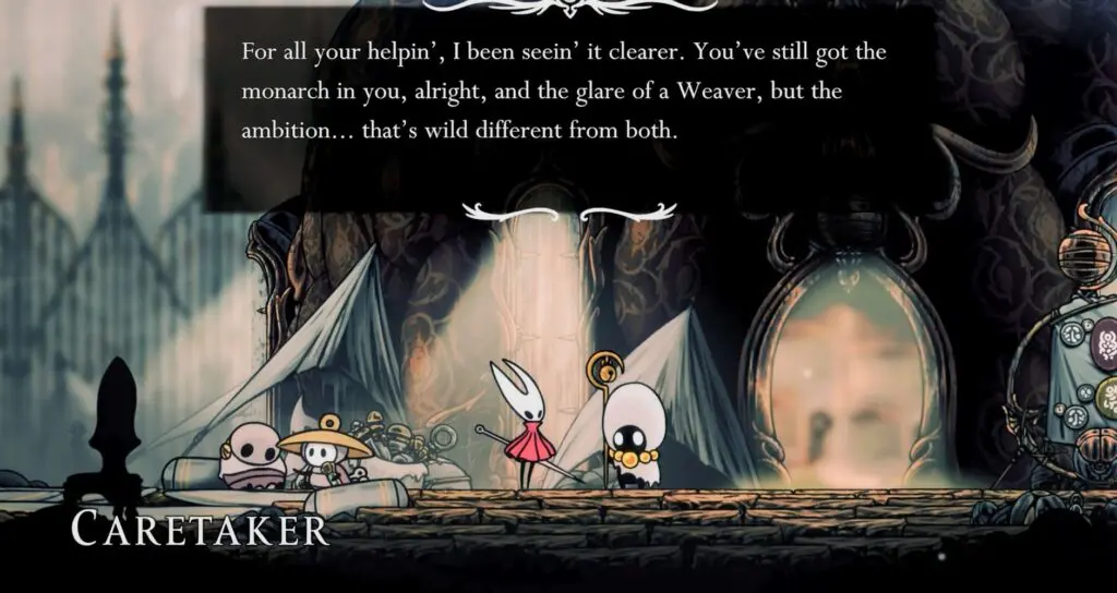 After completing all the sidequests, speak with the Caretaker and complete the “Silk and Soul” side quest. The caretaker will be at Songclave in the Choral chamber.