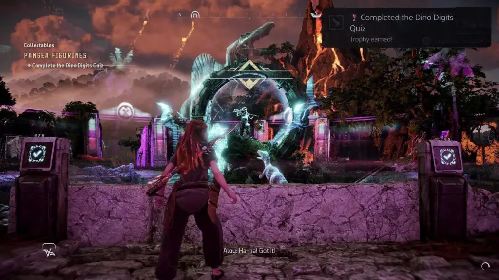 This article will guide you on how to solve the “Dino Digits Quiz” in the Burning Shores DLC – Horizon Forbidden West. The only pre-requisite before you can attempt the quiz is to find all 5 Pangea Figurines. The Dino Digits Quiz can be found at Pangea Park, which is instantly accessible during Main Quest #4: For His Amusement. Solving the Dino Digits Quiz unlocks the trophy Complete the Dino Digits Quiz.