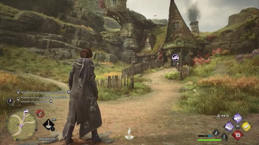 As the mission starts your objective is to “Acquire and use a Venomous Tenatacula”. For this head north of Hogsmead to a small village name Dogweed and Deathcap. The location is marked on the map.