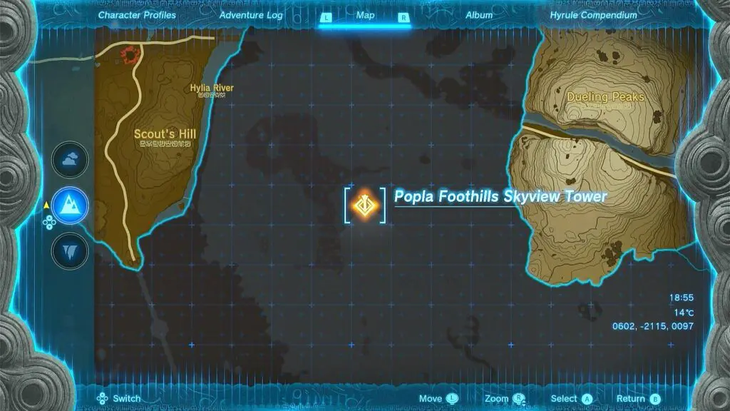 This guide shows how to unlock the Popla Foothills Skyview Tower in the Legend of Zelda: Tears of the Kingdom game, released on 12th May 2023. The location of Popla Foothills Skyview Tower is shown in the pictures below. You can enter the tower but you will find that the console inside is not working and the tower cannot be activated.