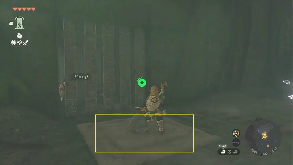Stand on the pressure plate inside the cave as shown in the picture below. This will open the iron gate, releasing Elmerson. Now use the ascend ability to go back up. Then enter the tower and you will be able to activate it now.