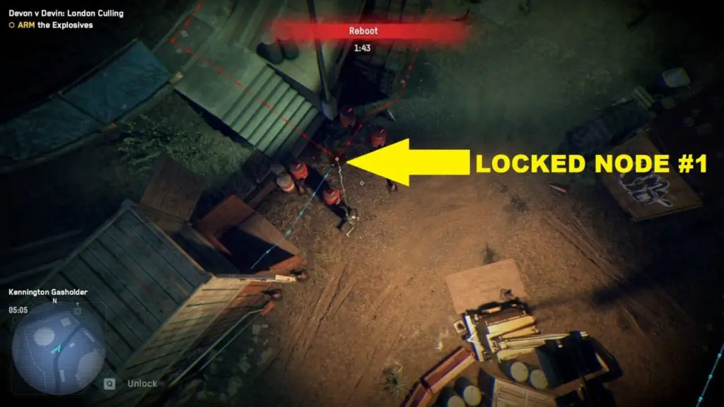 Devon v Devin: London Culling is the fourth fixer contract of the Watch Dogs Legion: Bloodline DLC. You’ll get the objective ‘Arm the Explosives’ when you reach the second movie set during this side mission. Get to the end of the movie set and interact with the terminal to reveal the nodal puzzle. This walkthrough will show you how to solve the nodal puzzle and arm the explosives. For a detailed visual walkthrough check out the video at the bottom of the page.
