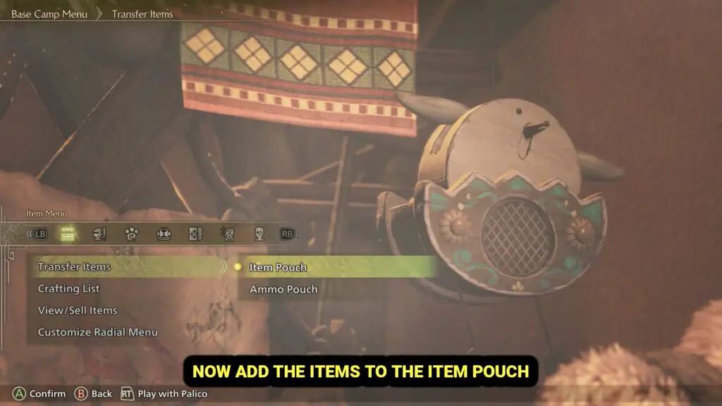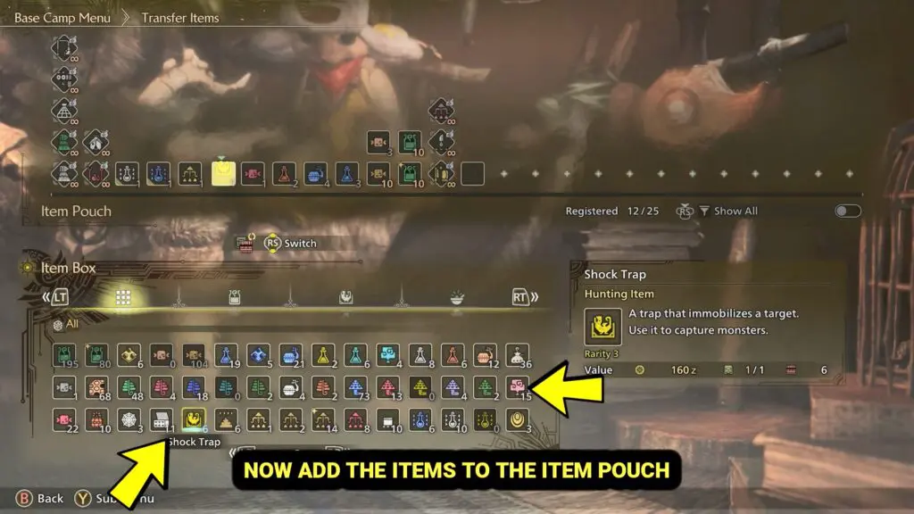 After receiving these items, move these two items into your Item Pouch, as shown in the below image. Note: There is a chance you might not get these two items because of a bug. If that happens, you can craft these two items also.