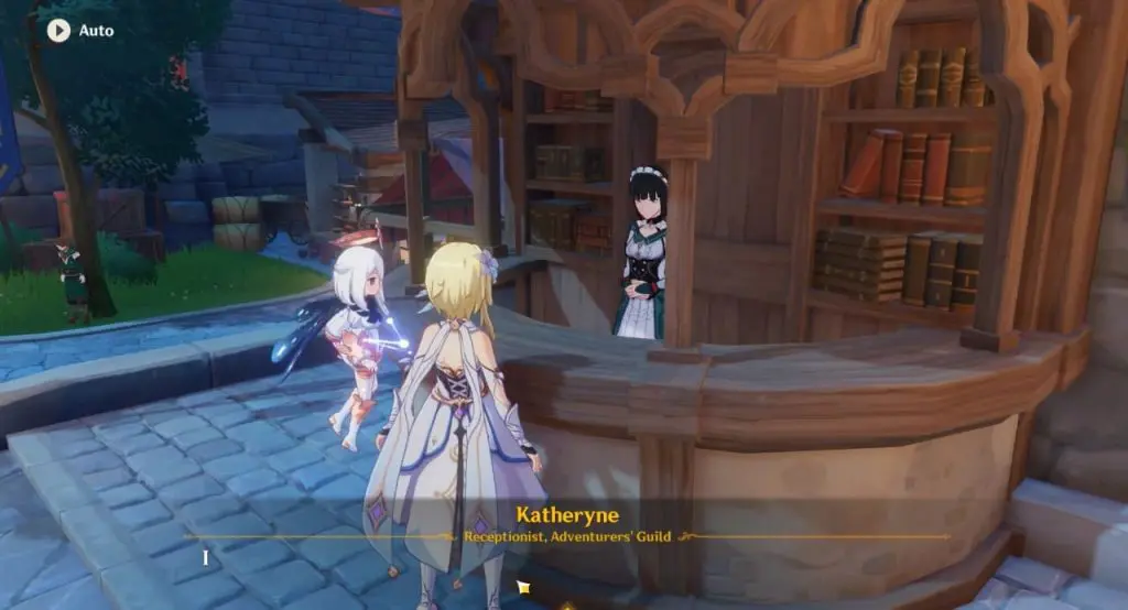 As you start this world quest, your first objective is to visit Mondstadt and speak with Katheryne. Katheryne is the receptionist at the Adventure Guide store. She will inform you that Fishing Association claims that the fishing activity in the nearby waters has been abysmal. She asks Traveler to check the situation