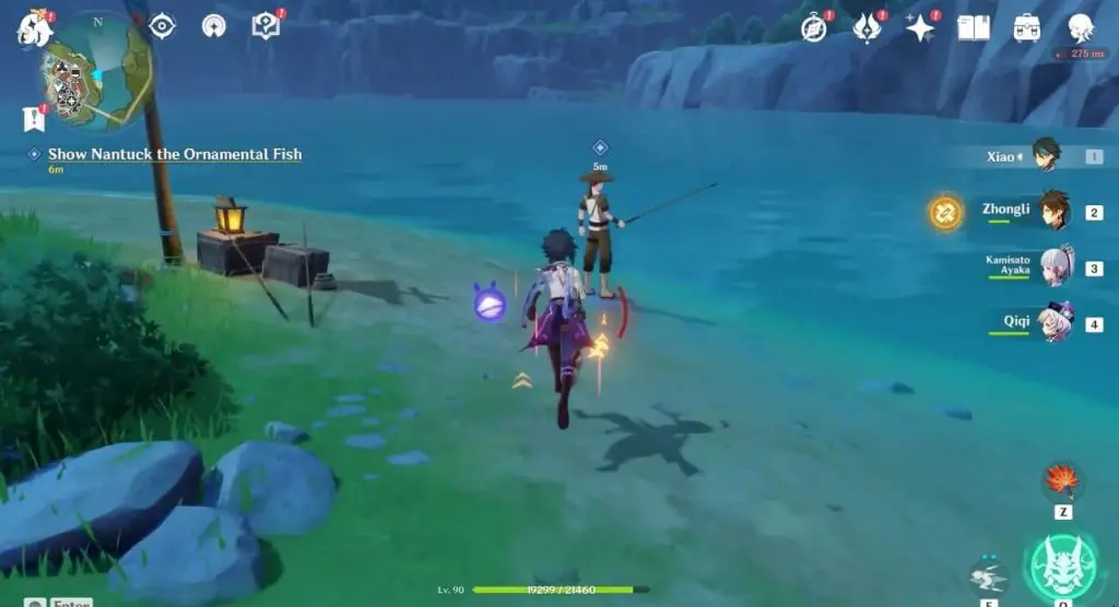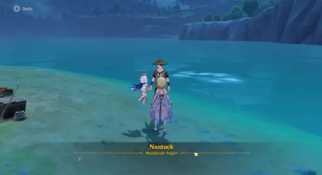 Exit the Mondstadt main gate and take a left turn. You can find Nantuck fishing on the bank of the river. he will tell many new fish species have suddenly appeared in the nearby water and they don’t have enough manpower to catch many fishes. Fishing Association wants to catch all the new fish species in a short time for research.