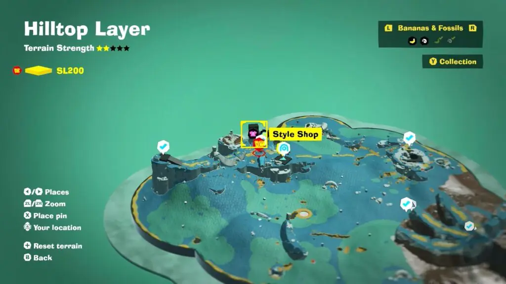 As you explore new layers in the game, you’ll eventually come across three types of shops. The shop that is marked by a t-shirt icon on your map is the Style Shop. This shop is key for unlocking fur colors, outfits, and accessories for Donkey Kong and Pauline.
