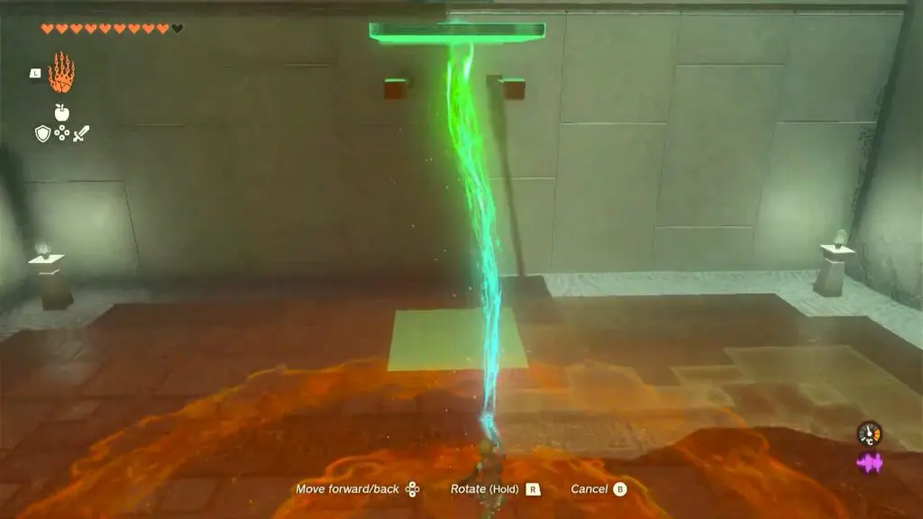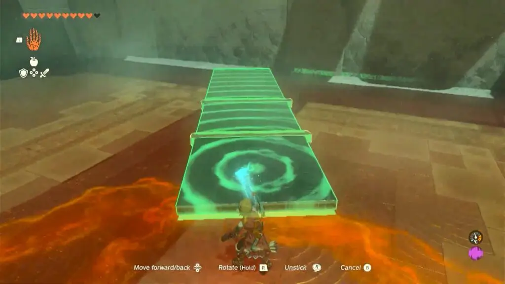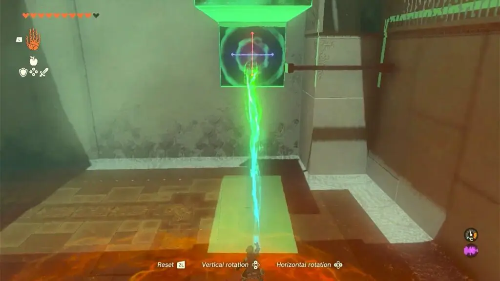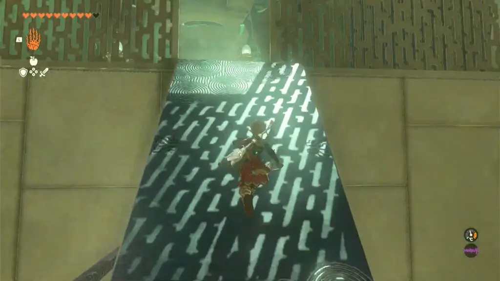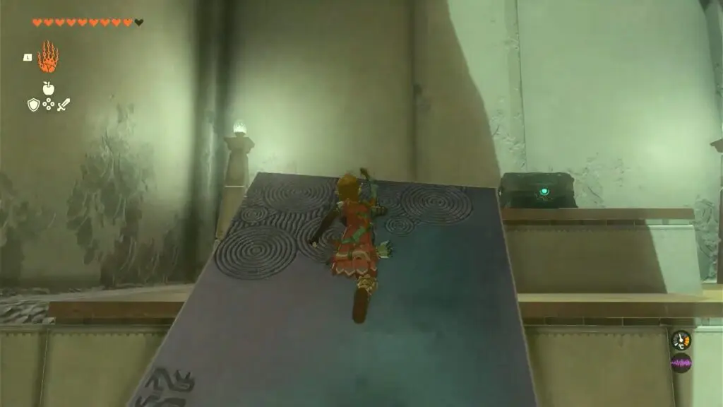 In the first room, your objective is to reach the elevated door. Use Ultrahand to grab the slab and carefully position it on the beams preceding the door.