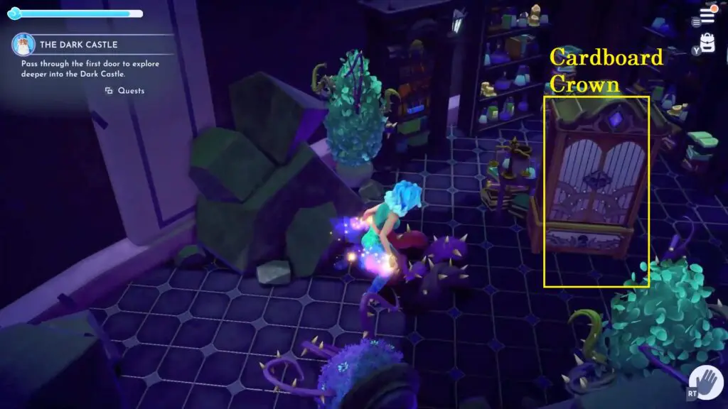 • Cardboard Crown: Found in the west Wardrobe of the castle