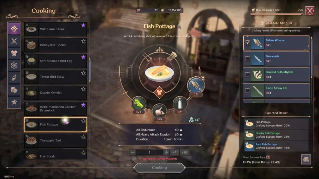 Fish Steak is a type of Attack/Consumable Food item that you can prepare once you reach Cooking Level 8 in Throne and Liberty (TL). Go to the cooking oven and select the armor recipes on the left side. Look for the Fish Steak.