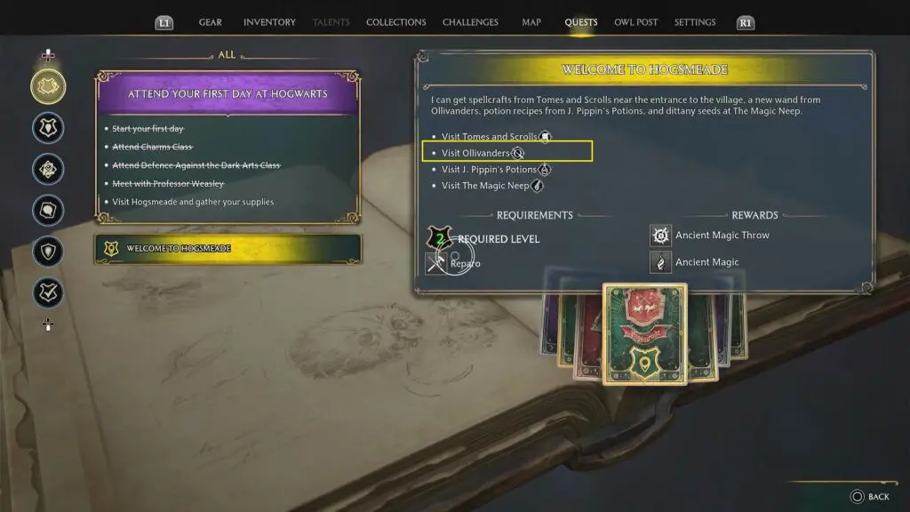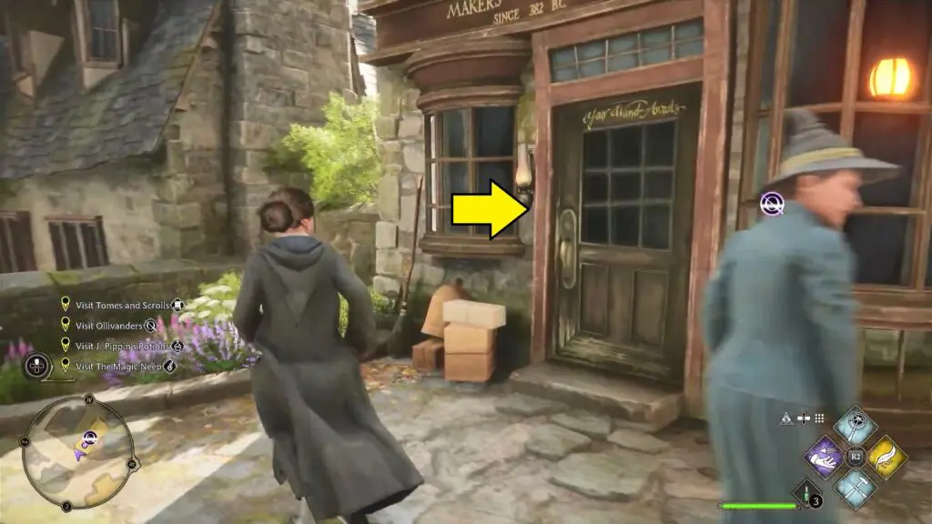This quest will require you to visit multiple places and the one “Visit Ollivanders” is for the magic wand. The location is marked on the map and makes your way over to Ollivanders. This is a renowned wand shop that is operated and owned by the Ollivander wand-making family since 382 B.C.