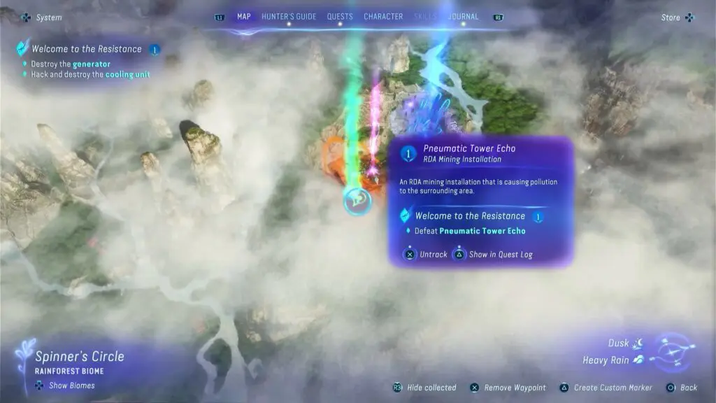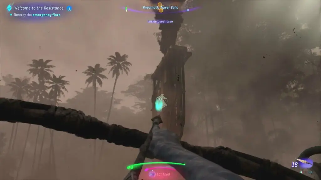 The RDA facility is packed with RDA soldiers, and new batches of soldiers arrive regularly to attack the player. Use the Na’vi Senses to easily discover the objectives at the RDA facilities after arriving at the Pneumatic Tower Echo in the Welcome to the Resistance Quest. The generator and the cooling unit are the two objectives. Head east towards the yellow generator and smash it with the bow to destroy it.