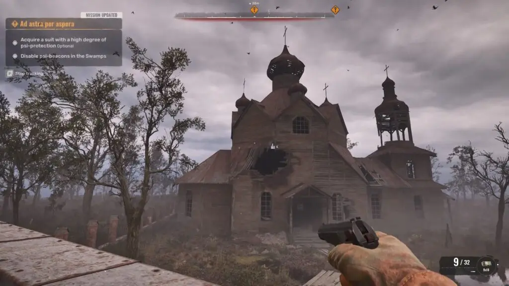 As the main mission progresses, the player needs to locate the second psi-beacon. This second psi-beacon player is located inside Old Church in the swamps area.