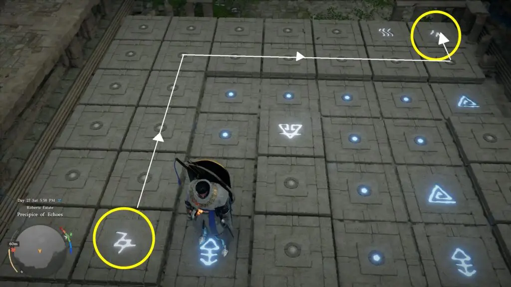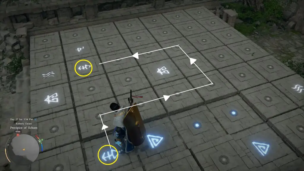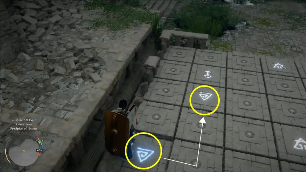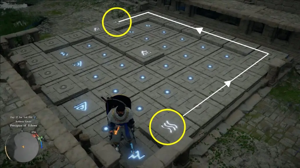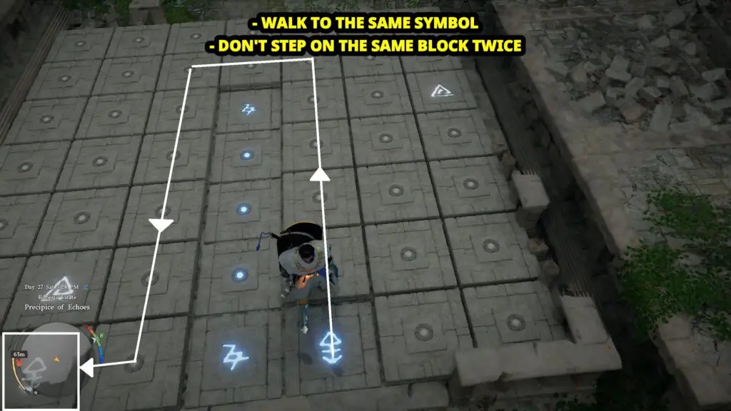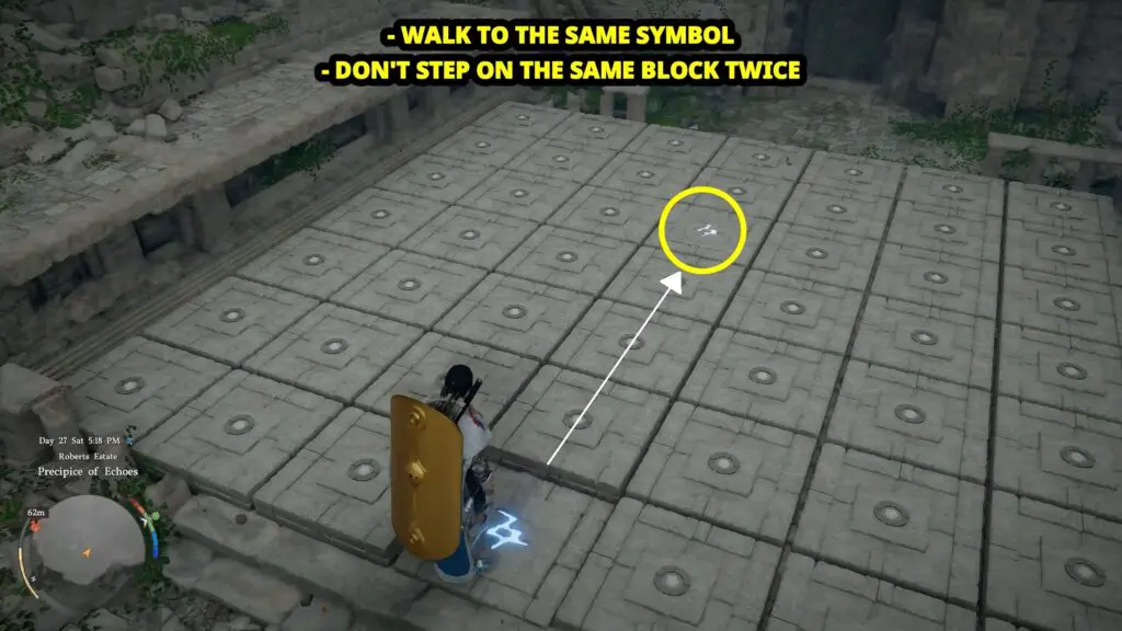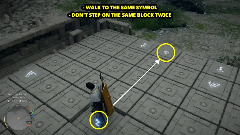 Step on the next nearby symbol as shown on the map. Follow the path shown in the image below to reach the matching symbol.