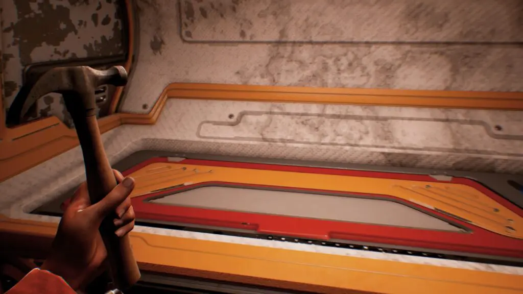 Next, remove the poster on the right side of the bunk beds to find the hammer.