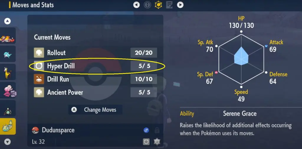 A player can evolve Dunsparce into Dudunsparce by teaching it the move “Hyper Drill”. Once you have a Dunsparce pokemon in your party, you need to level it up until it learns a particular move – “Hyper Drill”.