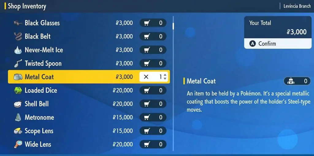 A Metal Coat may be purchased for 3,000 Pokédollars in the Delibird Presents store in Levincia city. Metal Coats may also be found at random in the overworld, but you’ll have a far greater chance of getting one by checking in with Delibird Presents after defeating a gym.