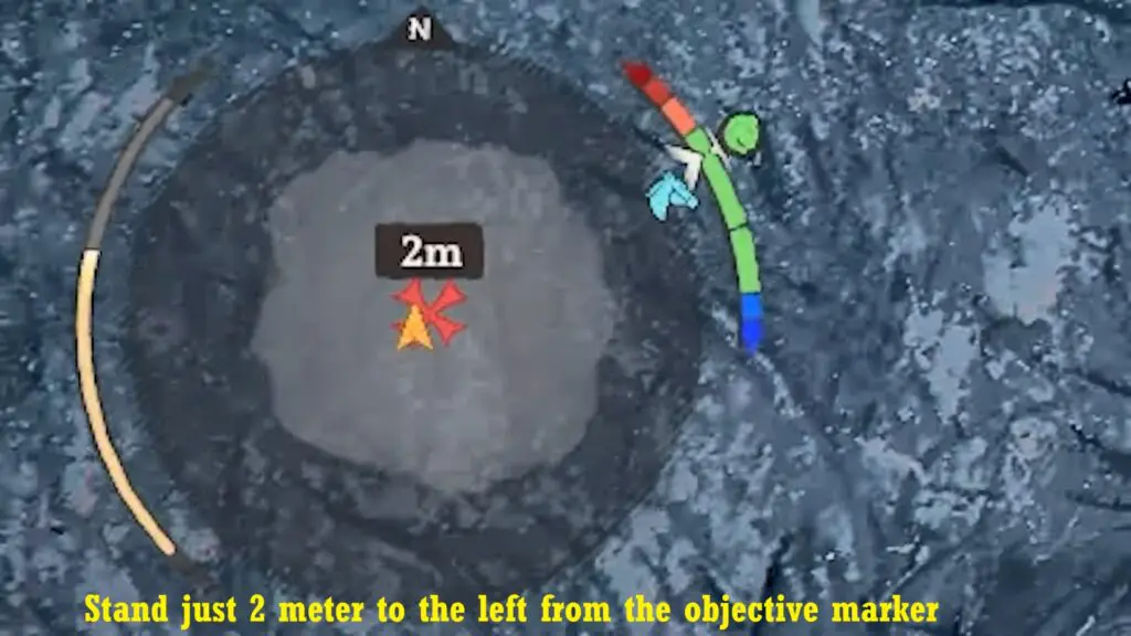 Note: Open your mini-map, face north. Position yourself about 2 meters to the left of the “X marks the spot” on your mini-map. Align yourself so you are facing the road near the north indicator.