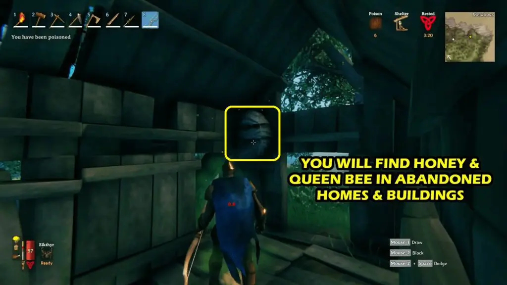 Honey is used to prepare Mead Base Recipes. Honey is produced in Beehives. Instead of searching for, honey every time we can build our Beehives. We need Queen Bee to craft our very own Beehive.