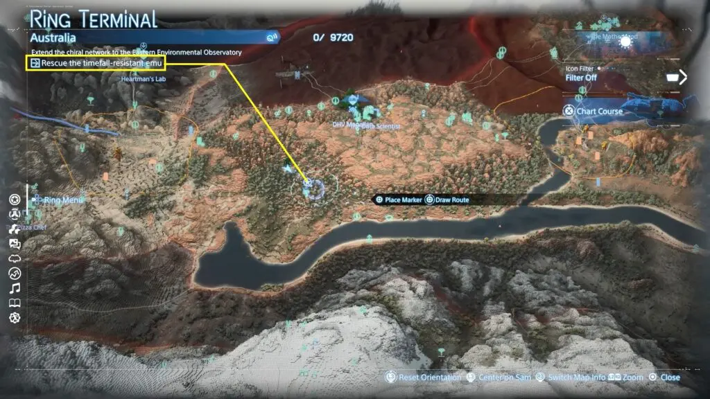 To find the Timefall Resistant Emu, fast travel to the Data Scientist as shown in the map below.