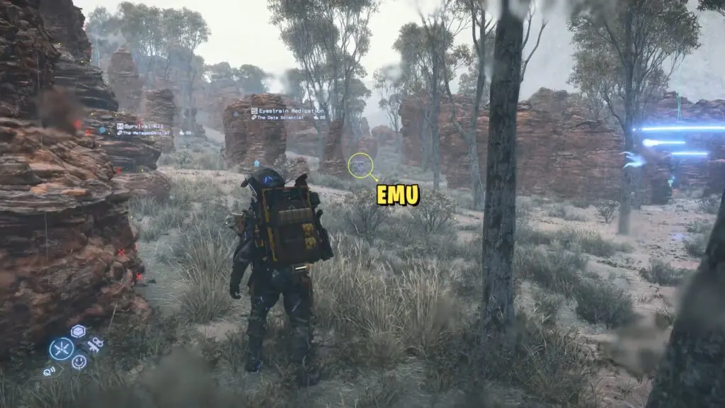 Once you reach the Data Scientist, head in the southwest direction. To find the emu, start to scan the area, and you will see the outline of the emu between the rocks. Refer to the image below.