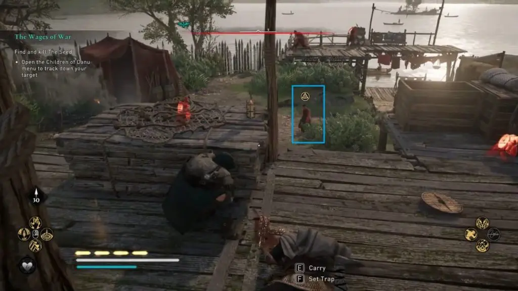 Kill the Deer: Once you get both the clues, the Deer’s identity and location will be revealed. Open the Children of Danu menu and track his location. The Deer will be roaming near the docks in the enemy camp in Inch Lough Neagh (north-west side of the Benn Uava fast travel point). You’ll automatically get the Seed’s third and final clue after assassinating the Deer.