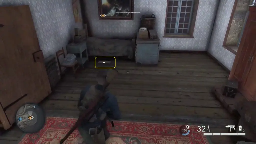 To collect the “Resistance Intel”, head to the second floor through the stairs and then enter the first room on the right. Search near the bed to recover the Resistance Intel.