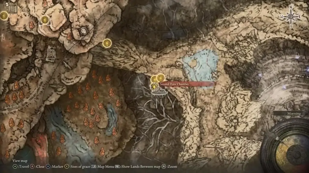 Follow the path in the south direction on the right side along the water. Upon reaching a waterfall, go to the left side where you’ll find another Site of Grace.