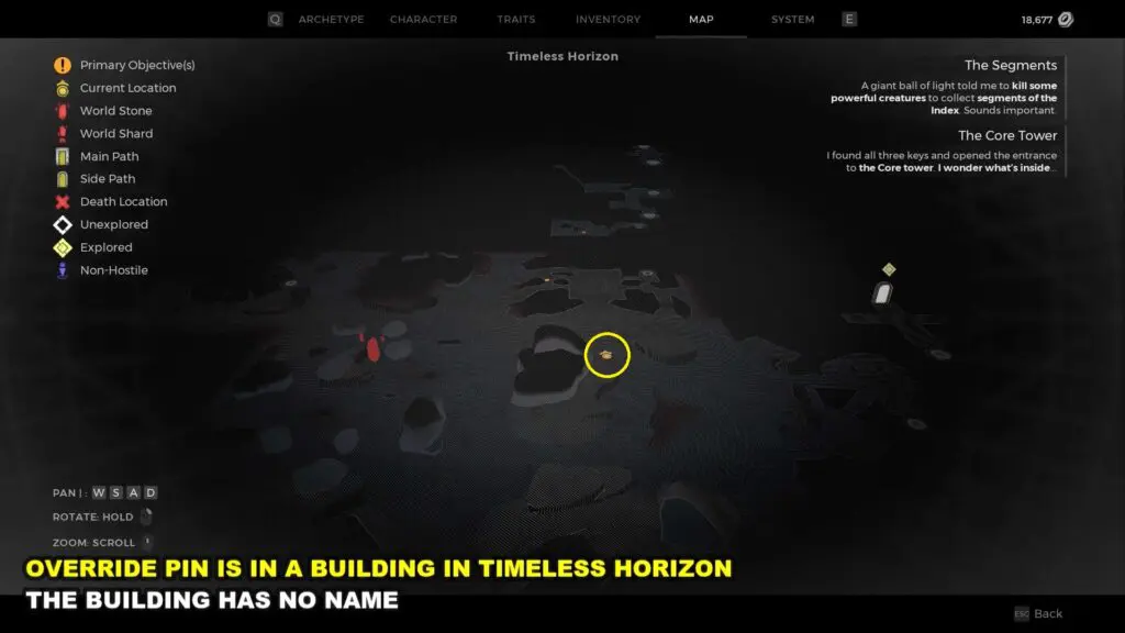 The Override Pin can be found inside a Nameless Building in the Timeless Horizon area of Remnant 2. Refer to the map below for the location of the building.