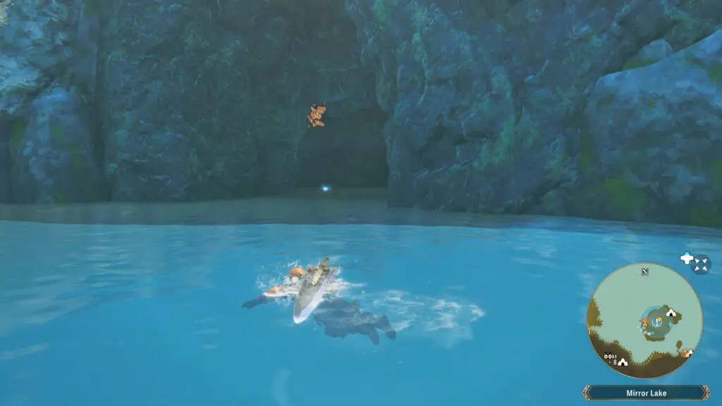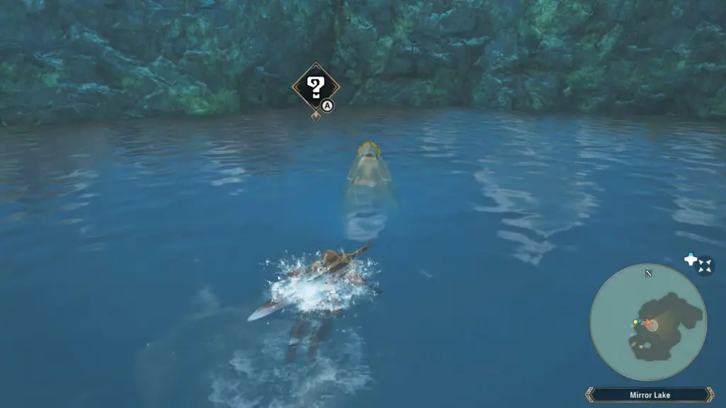 To find the Regalfin, first make your way to the island in the middle of the larger lake, as marked by the quest. Once you reach the island, move around the outer side of the island. As you circle the island, you will notice a cave opening connected to the water.