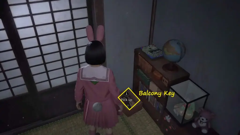 There, you’ll find the Balcony Key in a cardboard box next to a doll in a glass box at the bottom of a bookshelf.