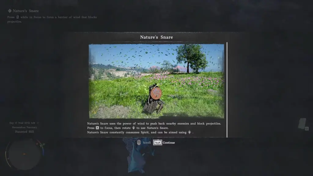 Once you have the skill, go into Focus Mode, and you will find Nature’s Snare skill bound to your heavy attack button.