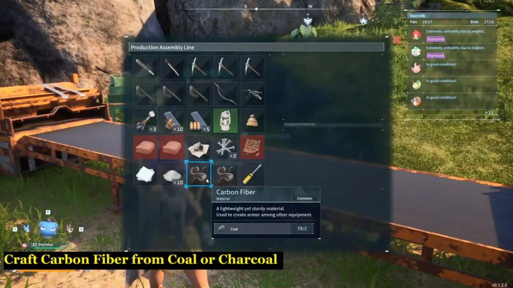 To acquire Carbon Fiber, it is essential to achieve a minimum level of 35 to unlock it in the Technology menu for crafting in Palworld. Once unlocked, you can obtain Carbon Fiber by processing either Coal or Charcoal.