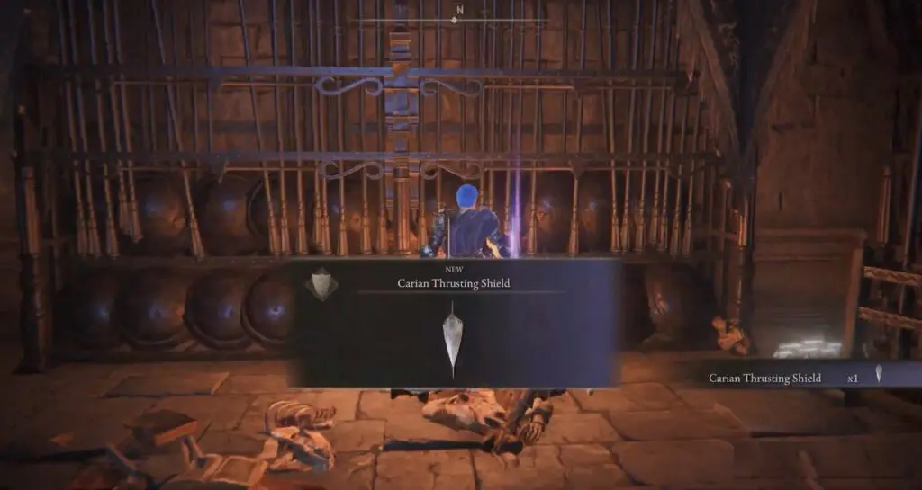 The Carian Thrusting Shield is located near the Storehouse, Back Section Site of Grace. This section of the Storehouse is not accessible from the inside. Players can enter this part of Shadow Keep via an alternate path using the Church District Entrance, Site of Grace.
