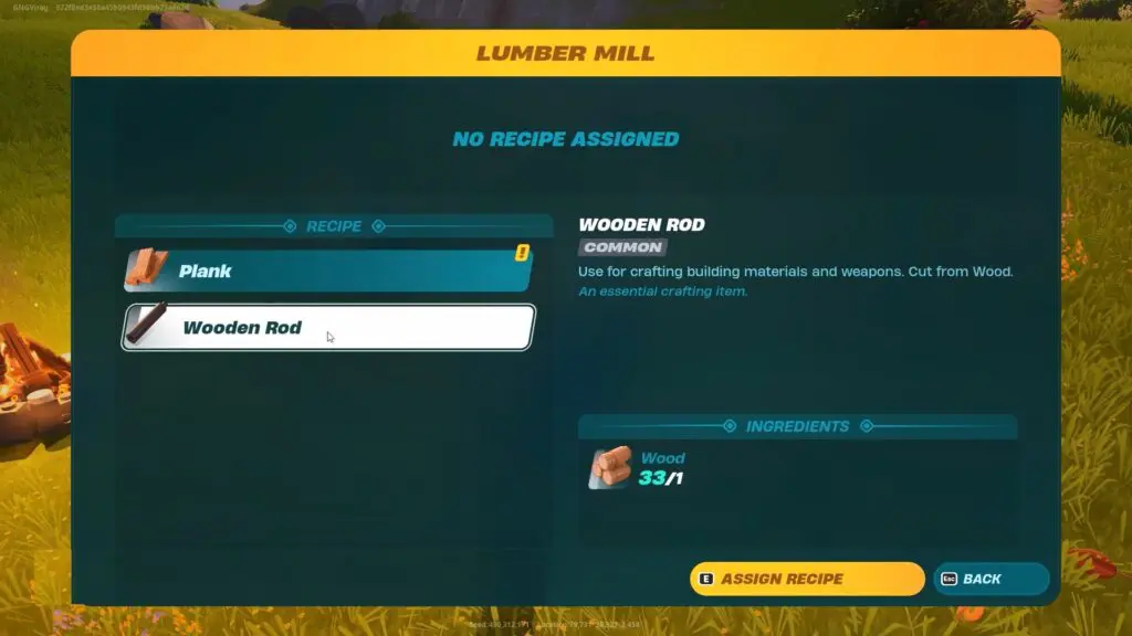 Interact with the Lumber Mill to Craft a Wooden Rod. It requires 1x Wood. Once you’ve built a lumber mill, interact with it and choose “Wooden Rod” from the recipes list. Use the up button on the D-pad to decide how many pieces of wood you want to turn into planks; it’s a one-to-one conversion rate. The process of converting wood into a plank takes a few seconds for each piece. When finished, remember to collect your planks by pressing the Y / Triangle button on the console.