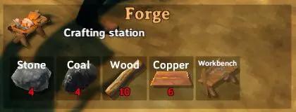 Crafting Bronze Axe Requires a Forge and Following Items:
