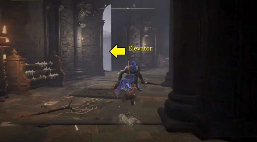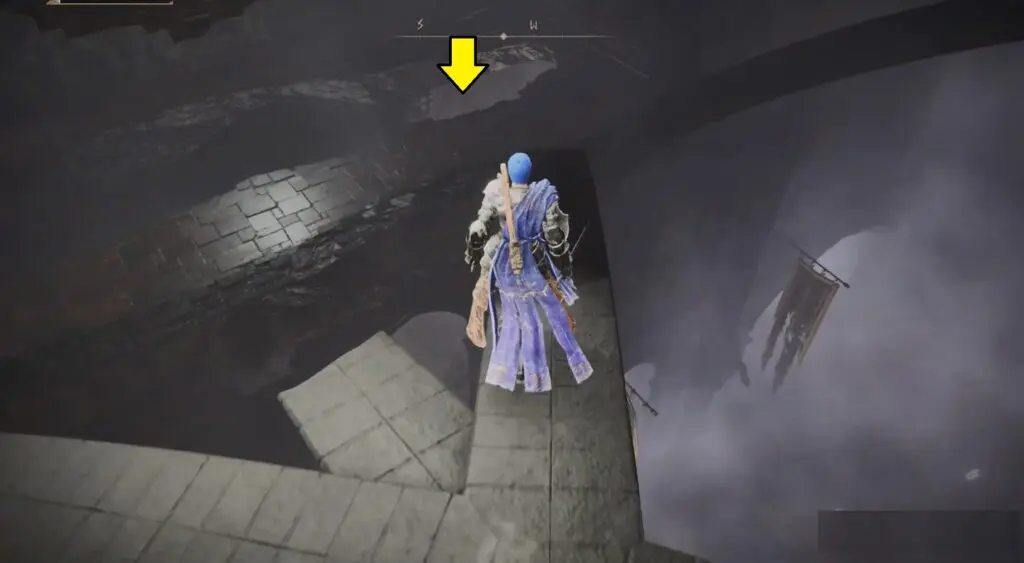 Once inside, jump onto the corridor on the west side and drop down one level through the opening on the floor.