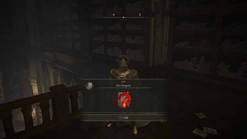 The Fire Serpent Shield is located near the Storehouse, Back Section Site of Grace. This section of the Storehouse is not accessible from the inside. Players can enter this part of Shadow Keep via an alternate path using the Church District Entrance, Site of Grace.