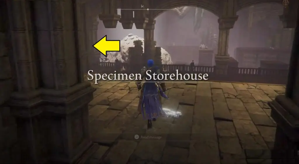 Use the elevator to reach the Specimen Storehouse. From there, head left to reach the Storehouse, Back Section Site of Grace.