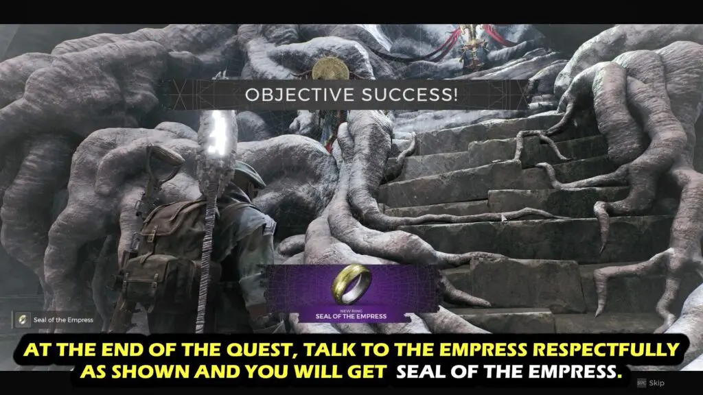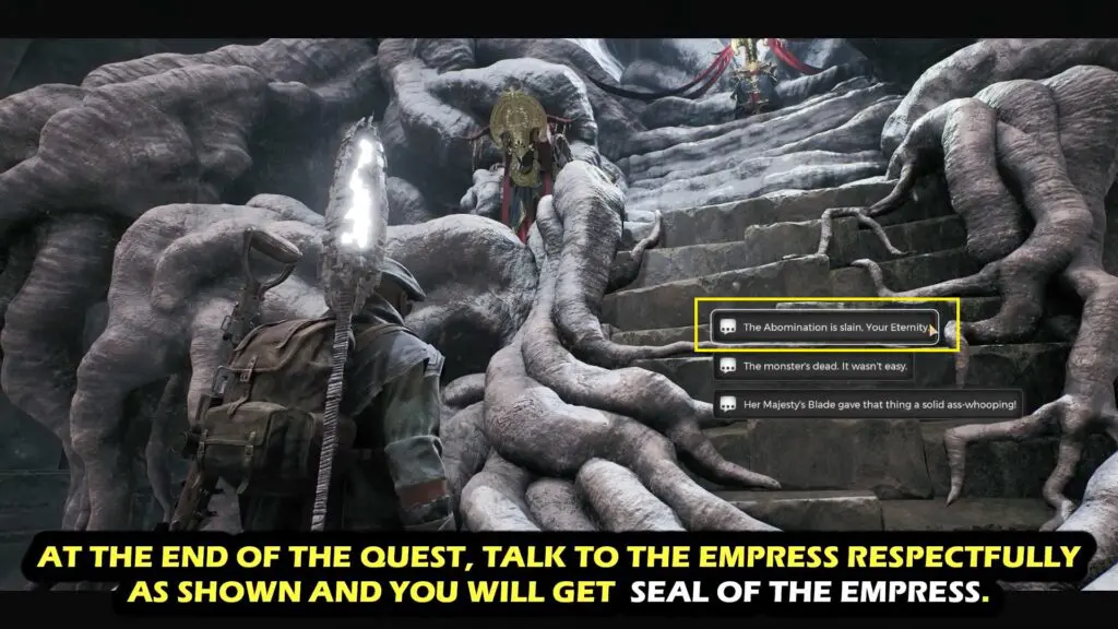 At the end of the quest, head to the Empress and talk to her respectfully. Don’t try to upset or fight with her. You can select mentioned dialogues.