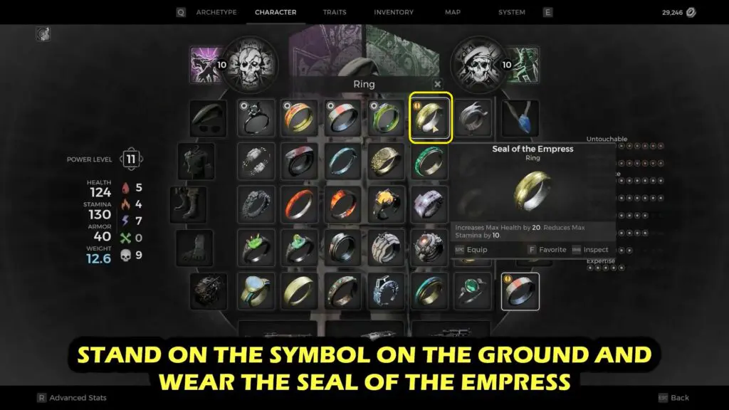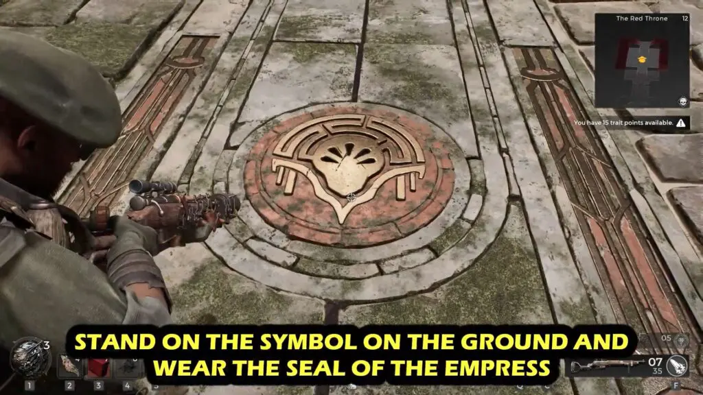 Stand on the symbol in the middle of the library and the Seal of the Empress.