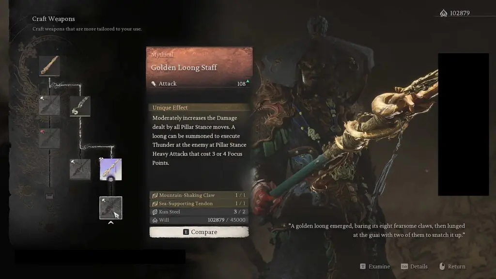 Now you will be able to craft the Golden Loong Staff. Crafting this weapon requires Kun Steel. Click here to see the location of all Kun Steels in the game.