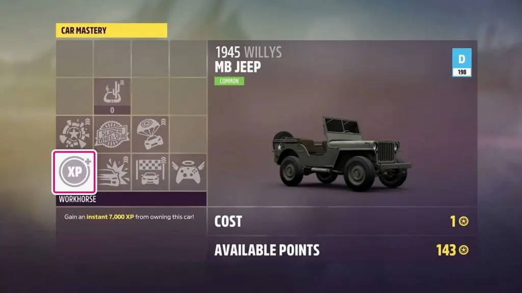 Note: At the time of writing, there is a skill mastery perk available that you should take advantage of. If you pay 40,000 credits for Willy’s Jeep (1945 Willys MB Jeep), you can spend five skill points to unlock super wheelspin. In the future, this Willys Jeep method may be patched.