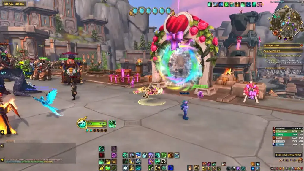 The Love is in the Air Event runs from February 3rd to February 17th, giving you two weeks to participate and earn Love Witch’s Sweeper Mount and other rewards. To begin, go to Darnassus, where you’ll find a big portal in the middle of the area!