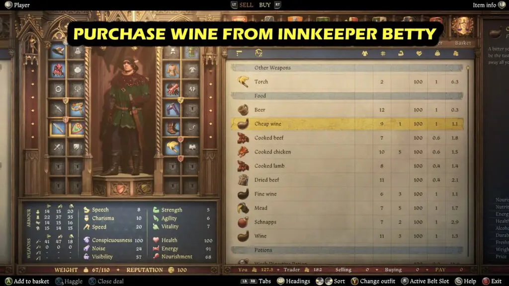 Head to the tavern in Troskowitz and speak with Innkeeper Betty to purchase a bottle of wine.