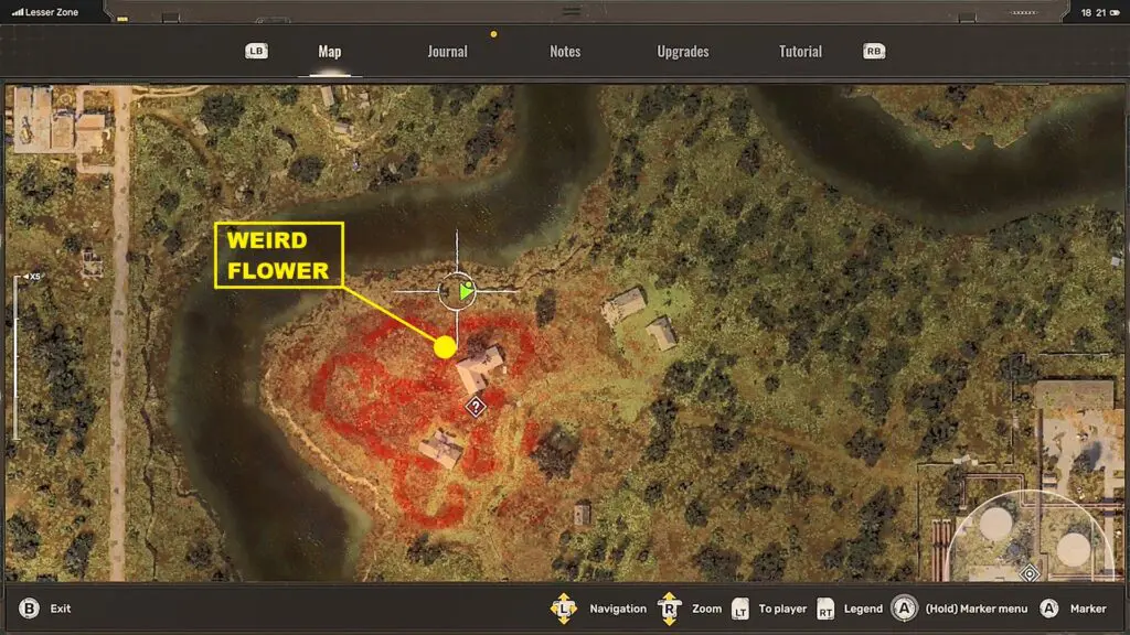 The location of the Weird Flower in the Poppy Field is shown in the pictures below. As you enter the Poppy Field, you will feel sleepy. If you fall asleep, then you will die. Drink energy drinks from time to time to keep yourself awake. Then run to the marked location and get the Weird Flower. After you equip the Weird Flower, you will notice that it has withered after some time. You will need to sleep for it to blossom again.
