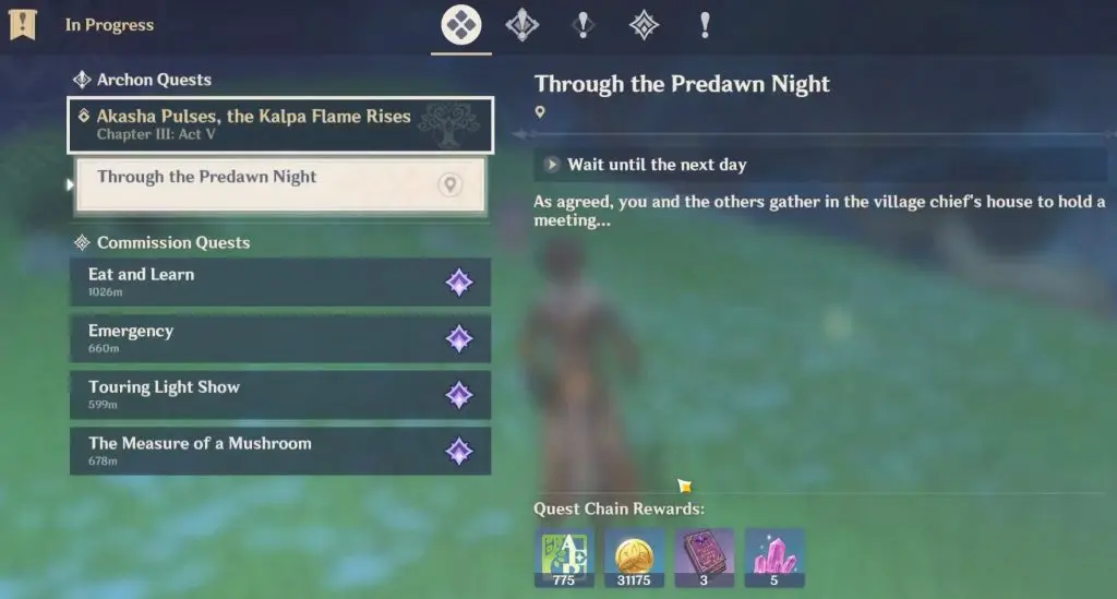 Complete the Archon Quest Chapter III, Act V: Akasha Pulses, the Kalpa Flame Rises. There are five quests in Akasha Pulses, the Kalpa Flame Rises.