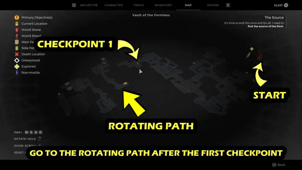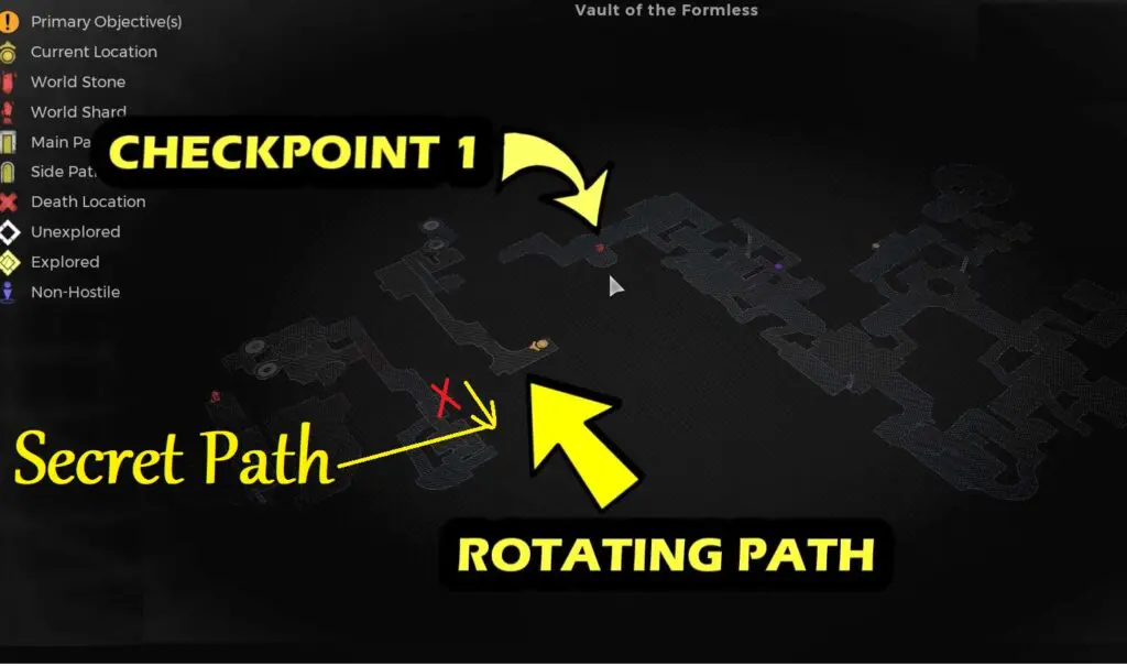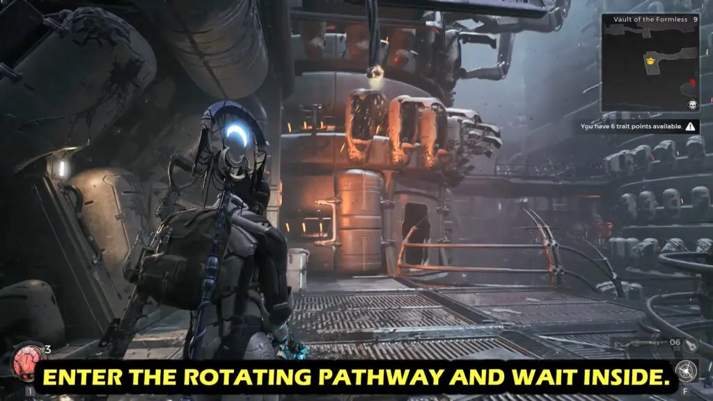 In the Nerud region, head to the Timeless Horizon in Seeker’s Rest area. Once there, make your way to the dungeon known as The Vault of the Formless. Cross the first checkpoint to reach the Robotic Arm (Rotating Path). Refer to the below image.