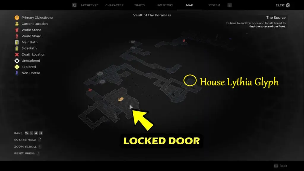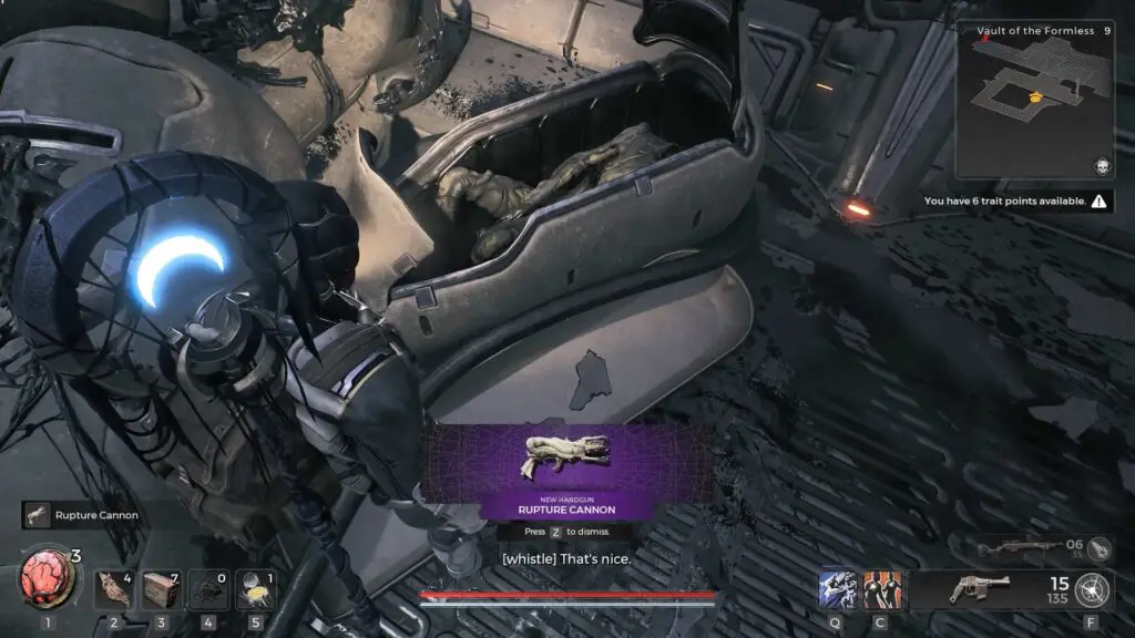 After we’ve got the House Lythla Glyph, go back to our locked door at Vault of the Formless in Remnant 2. Simply use the House Lythla Glyph item to open the door and you’ll get a shiny new weapon – Rupture Cannon inside.