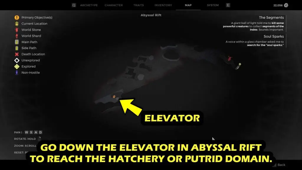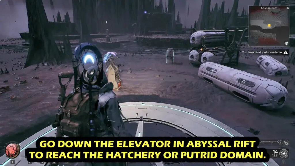 Then go down the elevator in Abyssal Rift to reach either the Hatchery or the Putrid Domain dungeon.