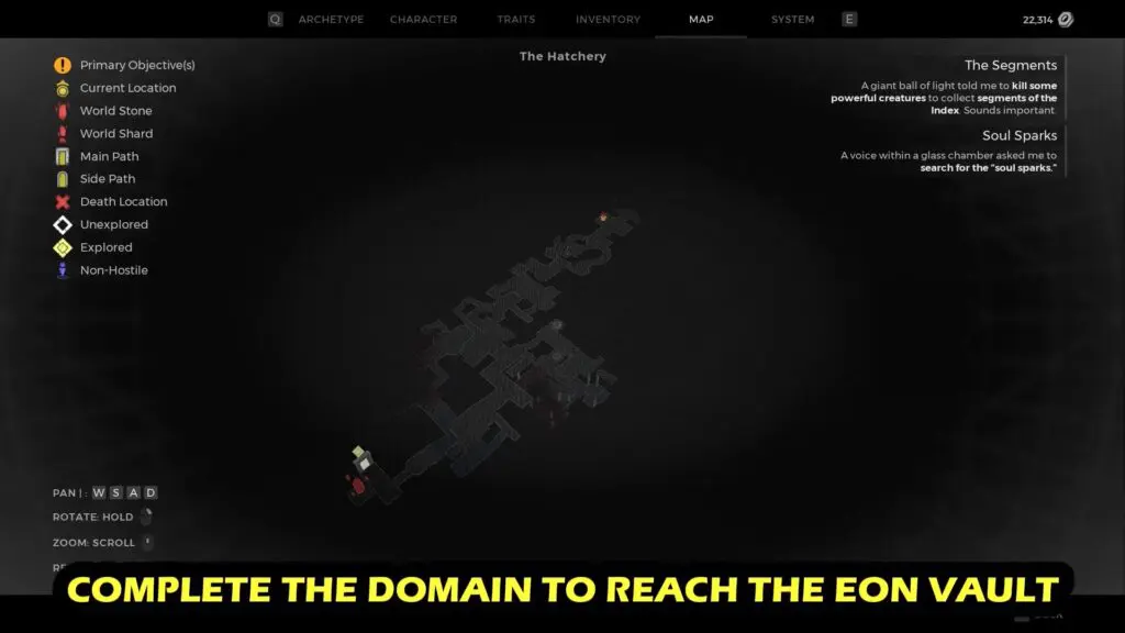 Afterward, make sure to complete either The Putrid or The Hatchery Domain dungeon. Once you emerge from the other side, you will find yourself in the Eon Vault region.